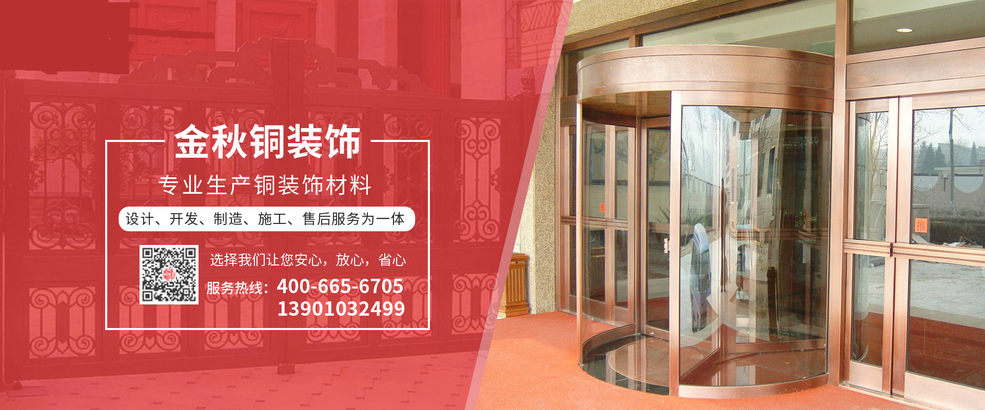 北京金秋銅裝飾材料有限公司是專業(yè)生產(chǎn)銅裝飾材料及設(shè)計、開發(fā)、制造、施工、售后服務(wù)為一體的大型綜合企業(yè)。可承接建筑銅裝飾工程及五星級酒店、別墅、博物館、樓樘管所等高檔銅裝飾項目;生產(chǎn)各種規(guī)格的旋轉(zhuǎn)門、平滑門、別墅門、電控門、工藝門、旋轉(zhuǎn)護(hù)欄、屋頂銅飾防水瓦、浮雕壁畫......